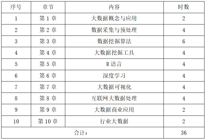 课程性质:本科高校大数据专业必修课程、非大数据专业选修课程。