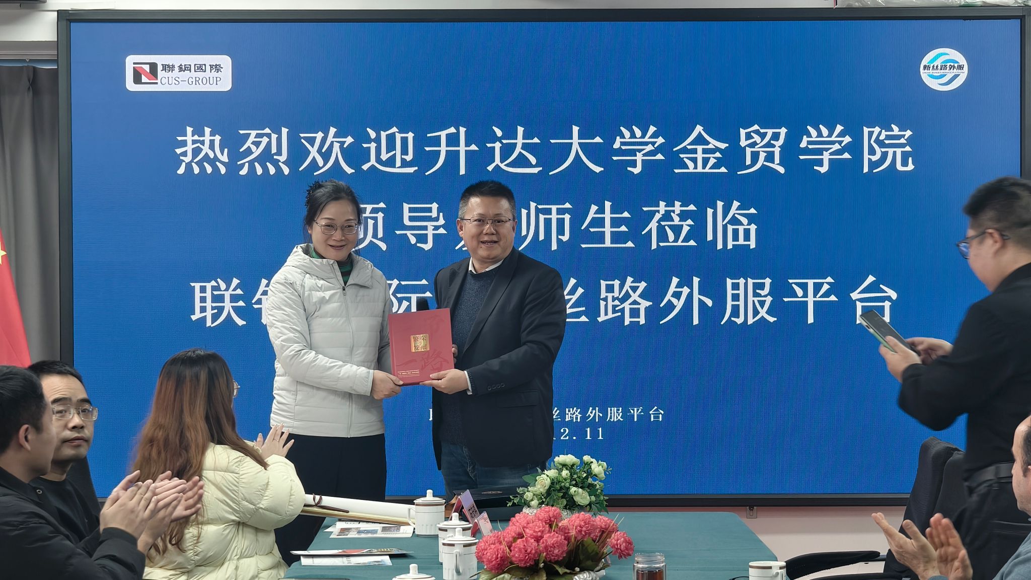 在热烈的掌声中,校企双方举行了简约而富有意义的纪念品互赠仪式。公司向企业赠予创办人王广亚先生的字画,寓意“文化传承、育人为本”的办学理念;联钢实业则向公司赠送了特制的企业纪念币,象征着“精诚合作、携手共赢”的共同愿景。这一环节进一步加深了双方的友谊与合作共识,为未来持续深入的校企联动奠定了坚实基础。