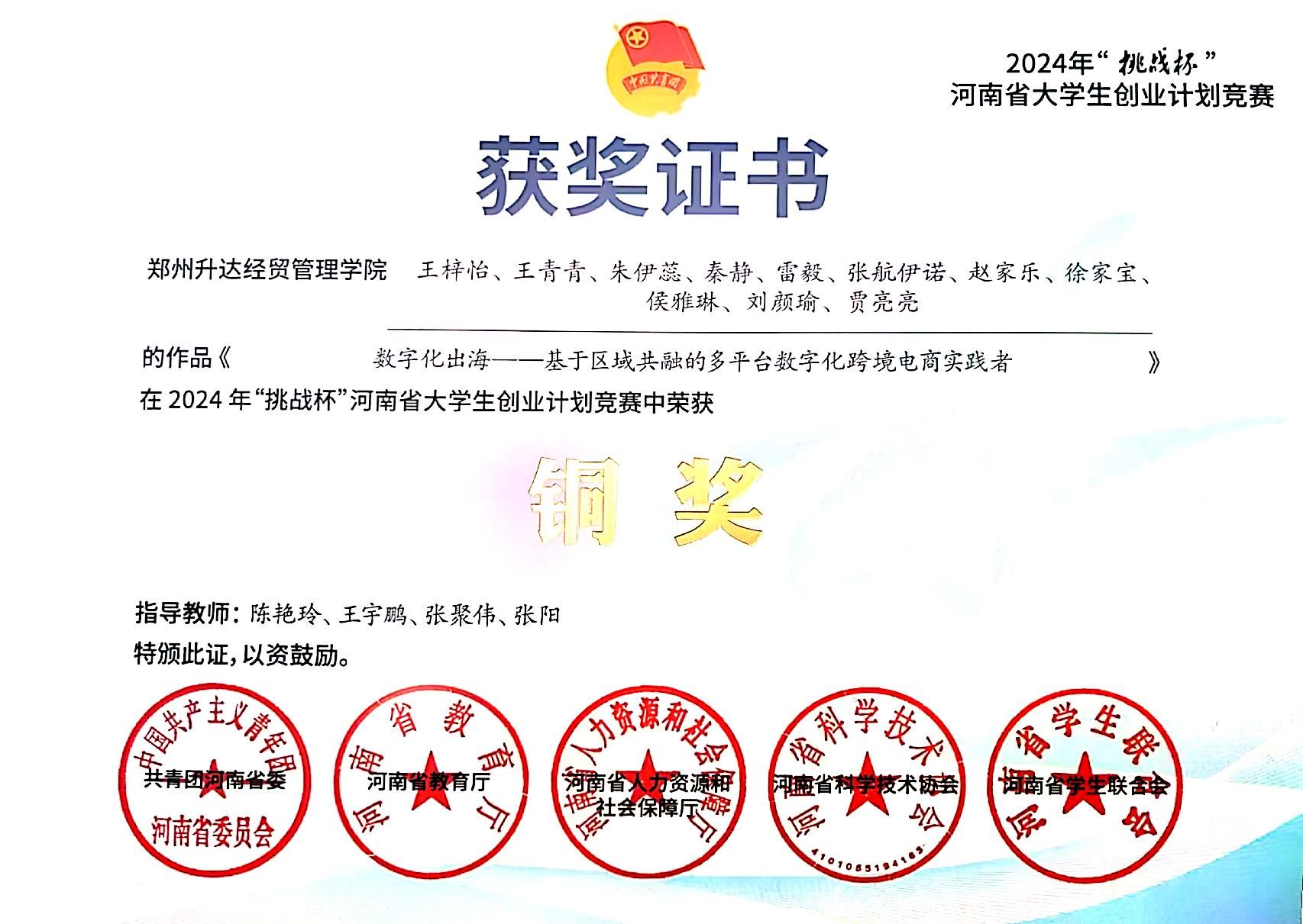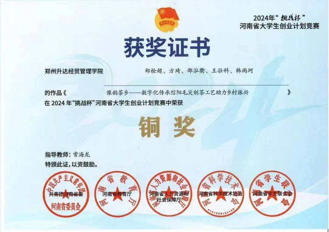 2024年河南省“挑战杯”荣获铜奖